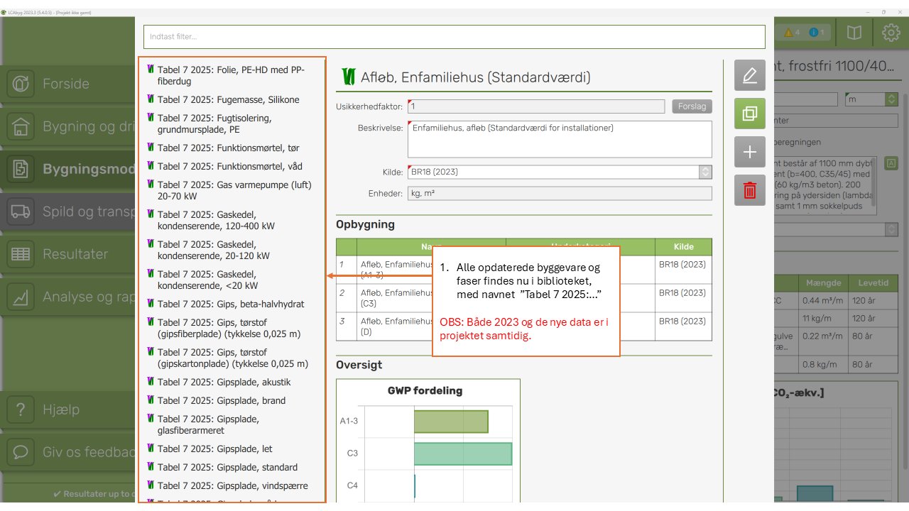 Være opmærksom på eksisterende fejl i LCAbyg 2023 5.4.0.4 og mulige fejl i dataene. Hvis der opleves fejl med dataene kan dette oplyses til lcabyg@build.aau.dk og vil efterfølgende blive rettet.