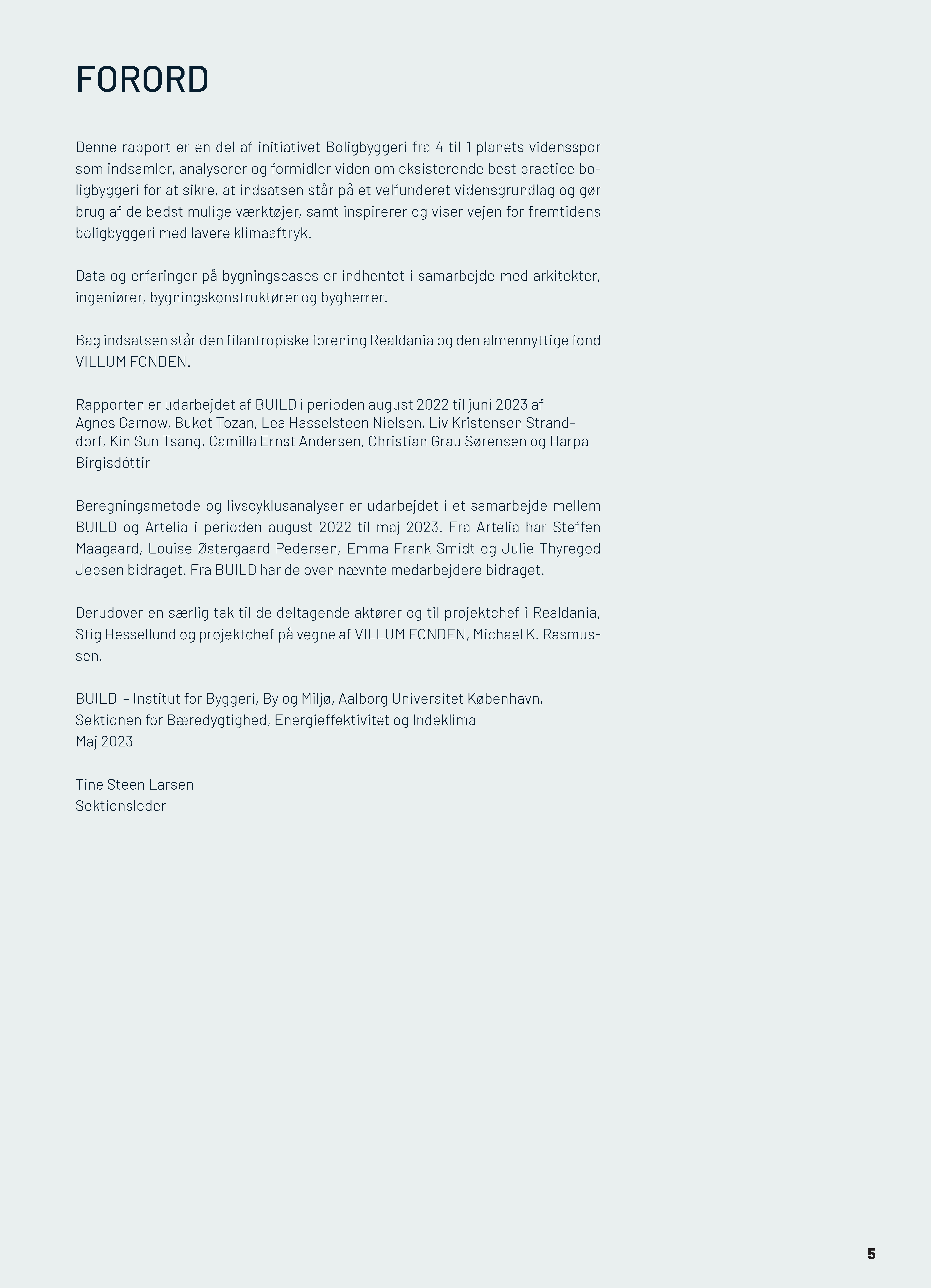 Denne rapport er en del af initiativet Boligbyggeri fra 4 til 1 planets vidensspor, som indsamler, analyserer og formidler iden om eksisterende best practice boligbyggeri for at sikre, at indsatsen står på et velfunderet vidensgrundlag og gør brug af de bedst mulige værktøjer, samt inspirerer og viser vejen for fremtidens boligbyggeri med lavere klimaaftryk.