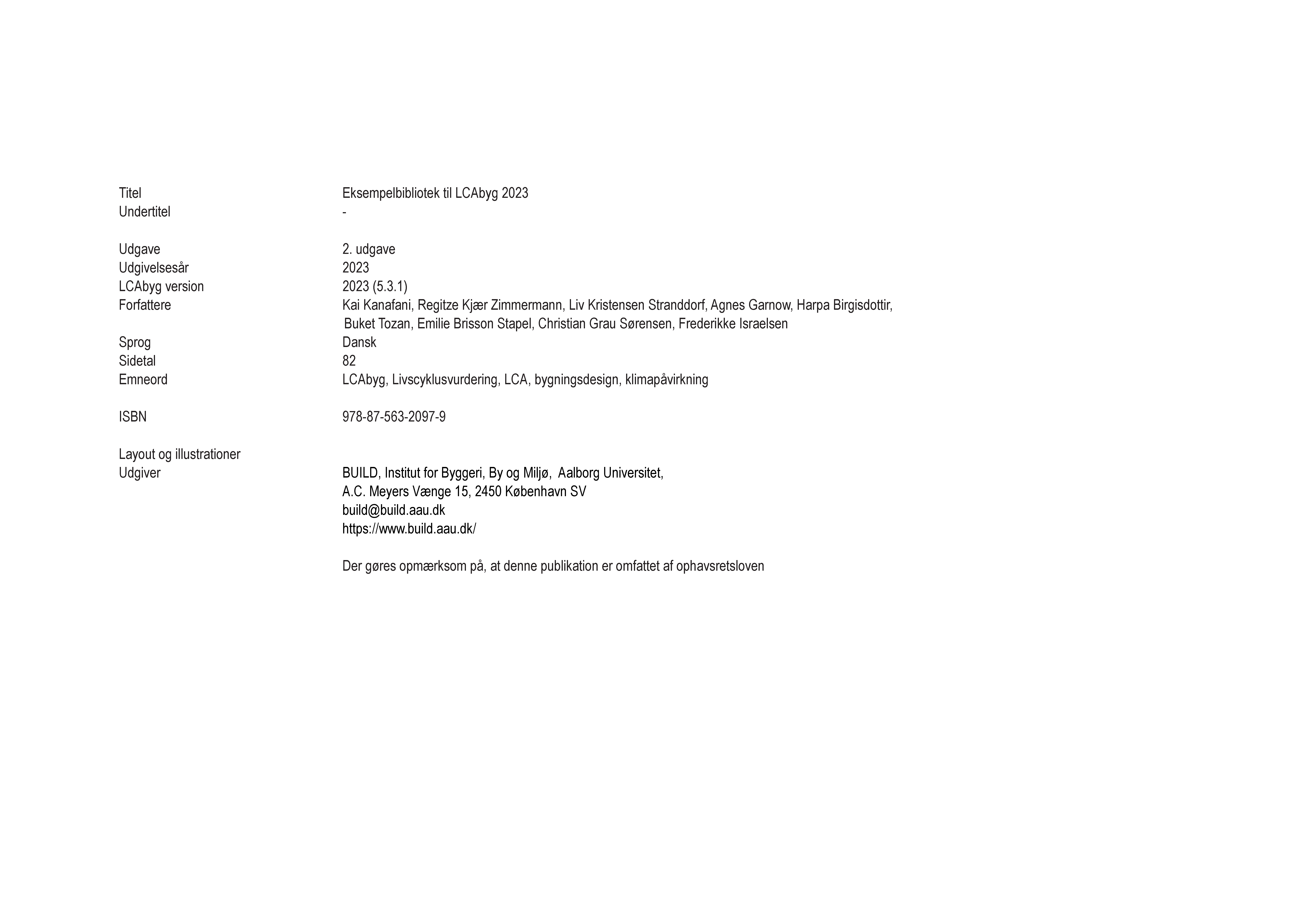 Denne publikation dokumenterer biblioteket over bygningskonstruktioner, som er integreret i LCAbyg 2023.