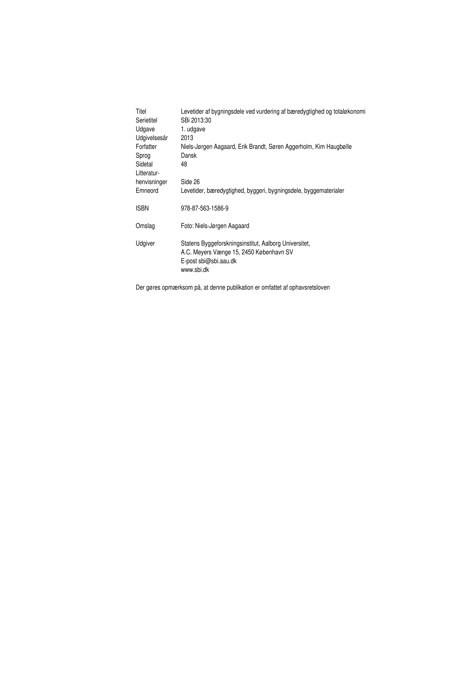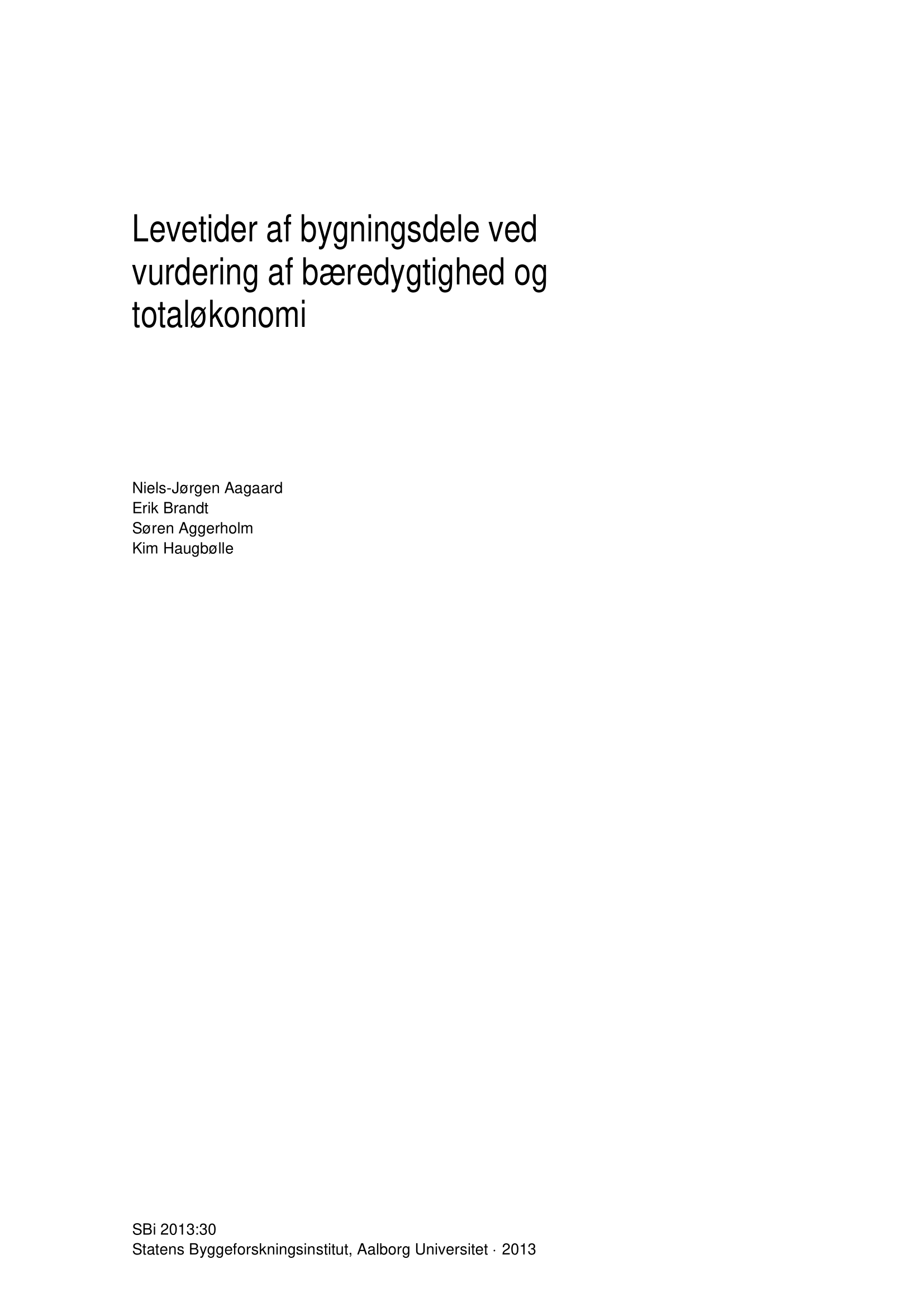 Formålet med rapporten er at vurdere den gennemsnitlige levetid for bygningsdele, som er relevant ved vurdering af bygningers bæredygtighed.