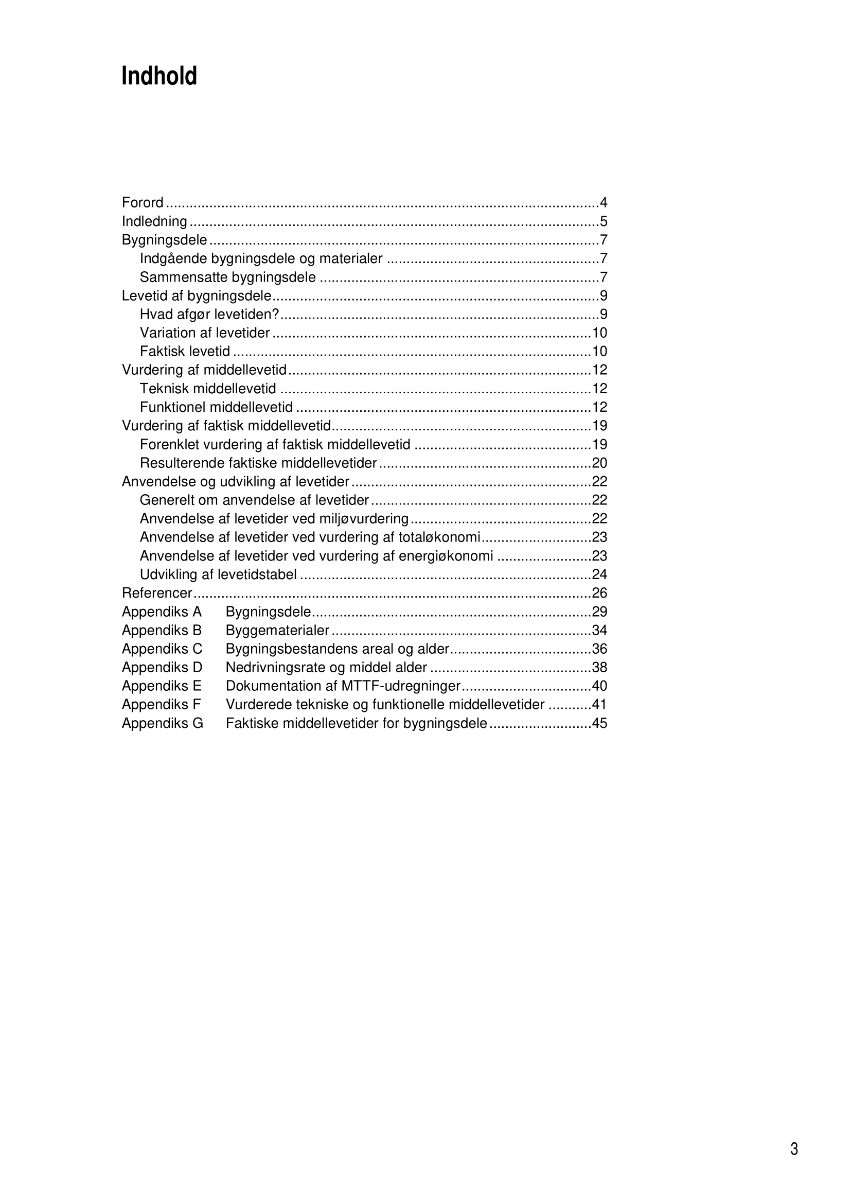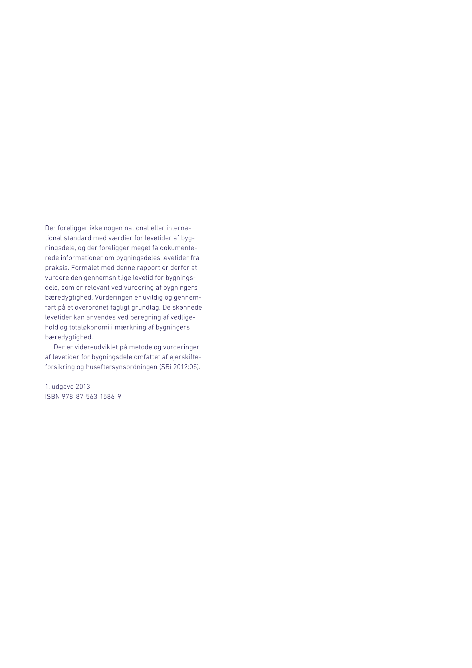 Der foreligger ikke nogen national eller international standard med værdier for levetider af bygningsdele, og der foreligger meget få dokumenterede informationer om bygningsdeles levetider fra praksis. Formålet med denne rapport er derfor at vurdere den gennemsnitlige levetid for bygningsdele, som er relevant ved vurdering af bygningers bæredygtighed. Vurderingen er uvildig og gennemført på et overordnet fagligt grundlag. De skønnede levetider kan anvendes ved beregning af vedligehold og totaløkonomi i mærkning af bygningers bæredygtighed.
